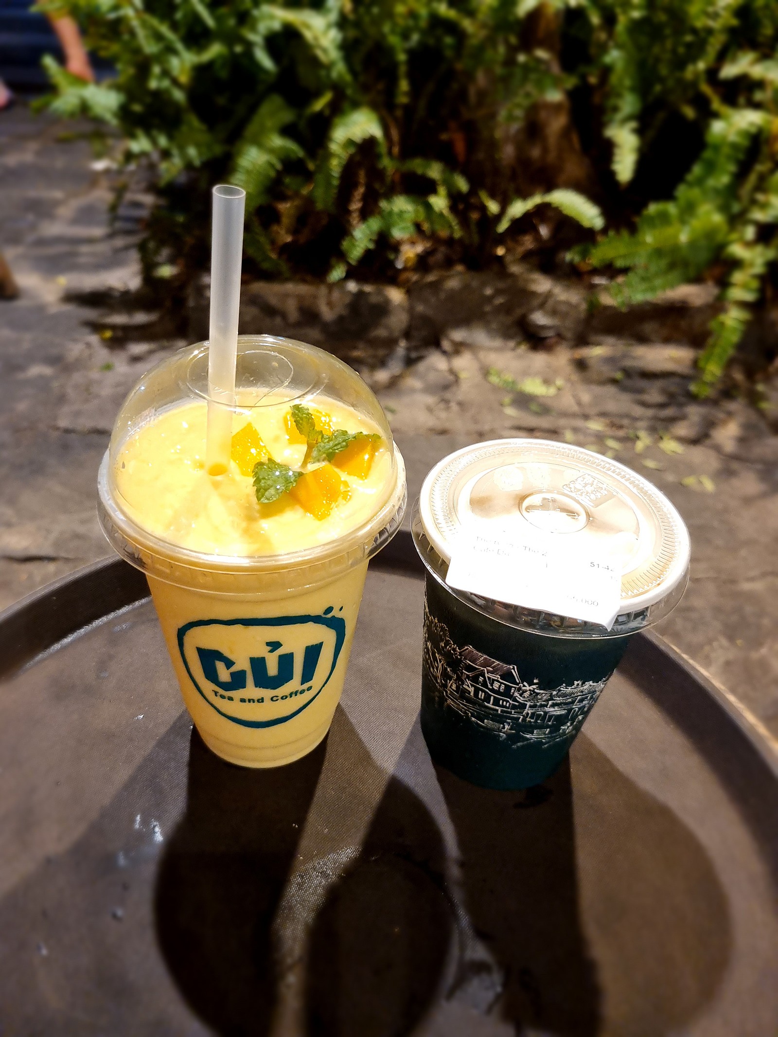 망고 스무디와 코코넛 커피를 주문했습니다.
