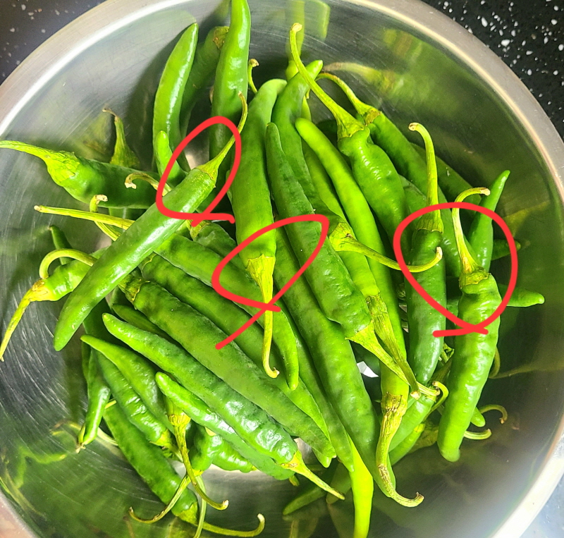 우선 일반적으로 모양이 곧고 고르며 표면이 탄력 있고 광택이 있는 것이 좋다. 팁의 끝이것이 싱싱하지 않고 색이 검거나 노랗게 변하기 시작했다면 약간 덜 싱싱한 고추라고 생각하시면 됩니다.