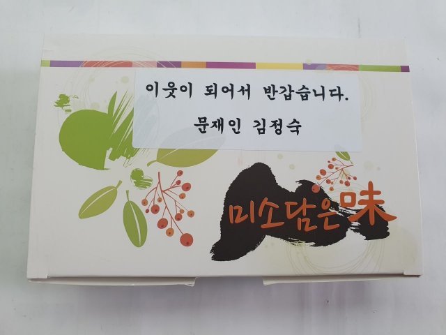 박근혜 대통령은 대구 달성군 숭계2리와 인근 상계1리, 동서가 사는 초곡리 등 179세대에 이사 떡세트를 전달했다. 감동떡세트 상자 안에 야쿠고, 고기떡 등 10여종의 떡이 들어있다. 예쁜 떡이 식욕을 돋구네요. 박 대통령이 식사를 전달하는 모습에서 박 대통령이 이웃들에게 사려깊은 케이크를 줬다는 것을 느낄 수 있다. 이는 달성군민들의 환대에 대한 감사의 의미로도 풀이된다. 왜 사람들은 항상 자신을 문재인과 비교할까요?