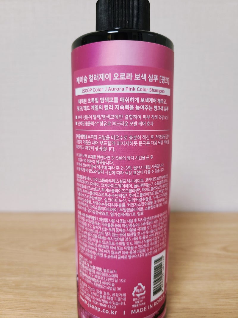 J SOUP의 보완 샴푸, 핑크 컬러 샴푸로 머리를 염색하고 머리를 감습니다